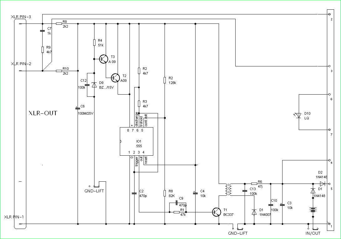 Proto nelze u všech běžně dostupných diboxů co znám použít napájení phatomem a současně odpojit GND. Umí to pouze Uliho DI-100 (ne že bych byl zastáncem FY BEHRINGER).Ještě jednou přikládám popravené schema výstupní a zdrojové desky DI 100