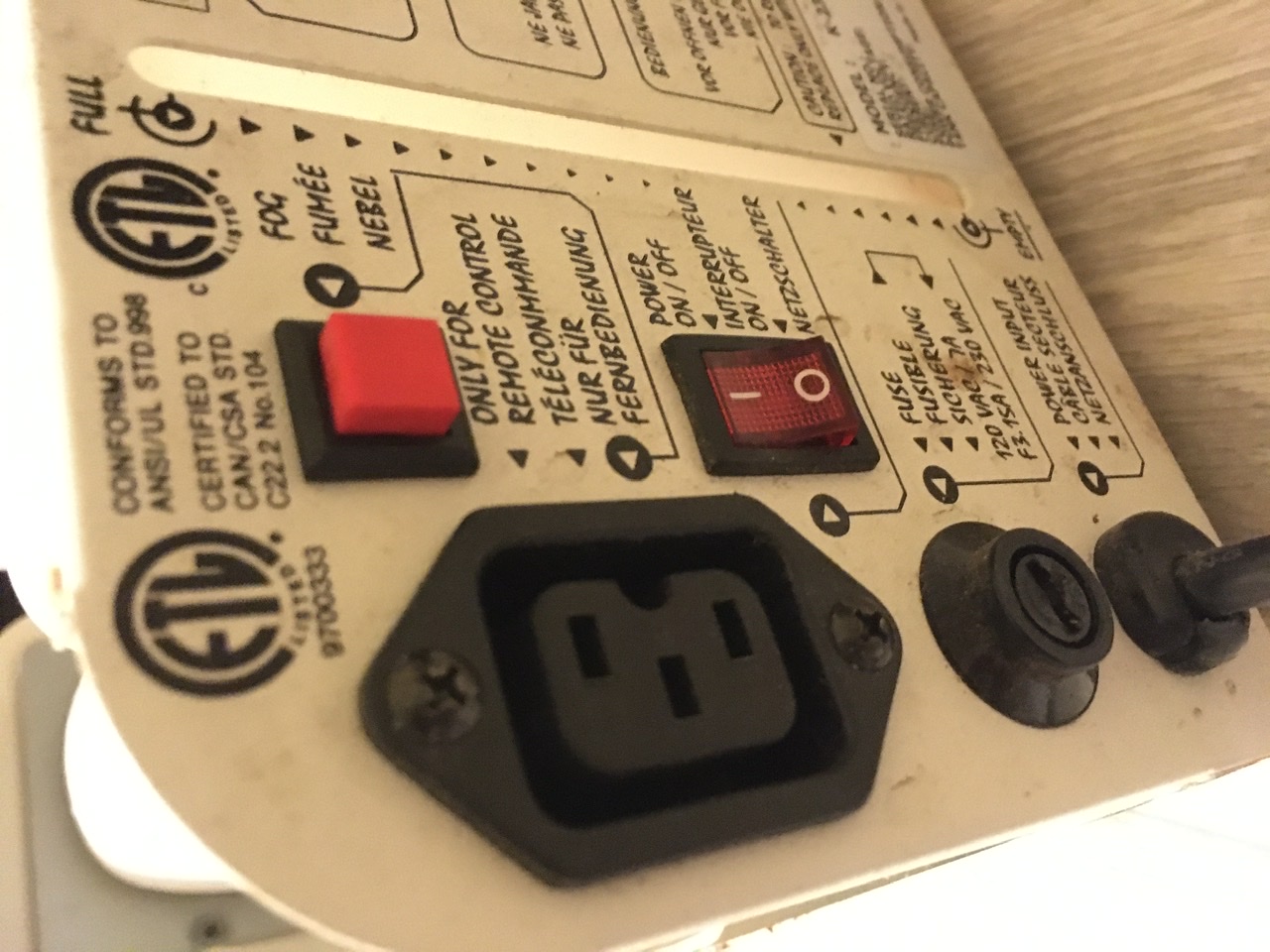 Dálkový ovladač je zapojen přes eurosamici vedle, k zapnutí se spojí dva krajní vodiče. Kompletní prosvětlený (začne svítit, když je mlha připravena) ovladač snad ještě někde mám i s kabelem.