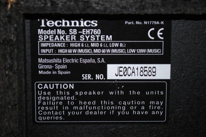 Speaker(s) - Super woofer 17 cm cone type, Woofer 12 cm cone type, Tweeter 6 cm ring shaped dome type