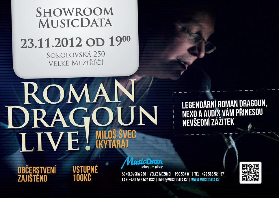 Tentokrát na koncert legendárního hudebníka Romana Dragouna a Miloše Švece LIVE!, který se koná v pátek 23.11. 2012 od 19:00 hod v Showroomu MusicData ve Velkém Meziříčí.