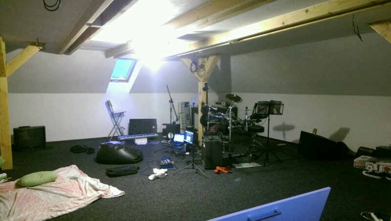 U domácích studií téměř nikdy nejsou peníze na seriózní projekt. Přitom to je jediná 100% cesta k úspěchu. Pokud nejít touto, tak už jakkoliv. Tedy levná a univerzální rada neexistuje. Pokud to nikdo nezměří a nespočítá, dělej to jako "pokus omyl", přemisťuj a poslouchej, dokud to nebude nejlepší. Taková holá místnost musí být nepříjemná i jako zkušebna, natož "studio". Šikmé střechy nebudou asi vadit tolik, jak ty holé stěny. Přitom by se určitě zužitkovala nějaká police na kabely, skříňka na mikrofony...