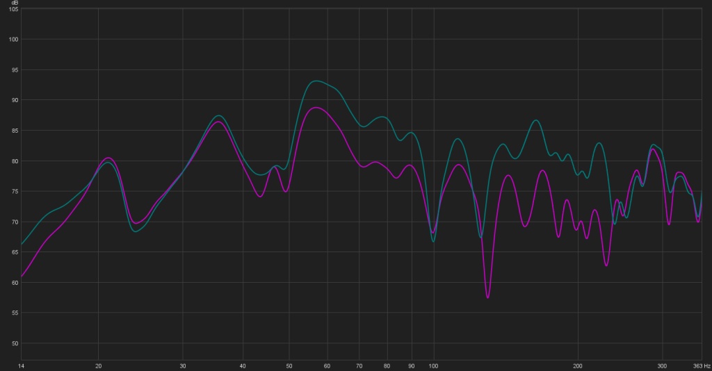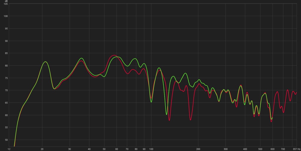 Včera sme tak nejak skonštatovali, že s tým jedným 15" to celkom ujde, ale nie je to také plné, ako keď tam boli po dva, lebo vtedy sa z časti vykryli tie prepady spôsobené módmi, i keď to malo zase iné necnosti. Vyzerá to, že ešte bude pár pokusov aj s dvomi. Na samom začiatku som si myslel, že ti naklonené časti stropu sa prejavia priaznivo ale je to úplne opačne.