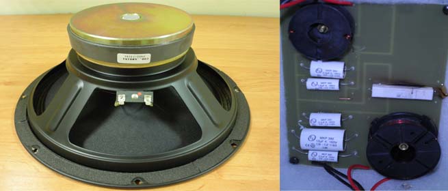 To je skoro jistě Ciare COD (má to ještě nějaké číslo, které si teď nevybavuju), prodáváme to asi za 1100Kč, slušný 200W 12". Výhybka přímo od nás asi není, kondenzátory z Ostravy nepoužíváme už hodně dlouho. Chybí mi tam foto horny, jestli je to HM17-25, tak by výhybka měla být tohle: