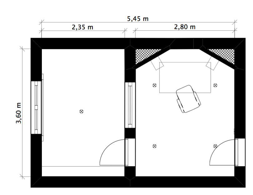 Nějak takhle (viz příloha). Nahrávací místnost je "skoro-čtverec", což v danou chvíli vidím jako nejmenší zlo.