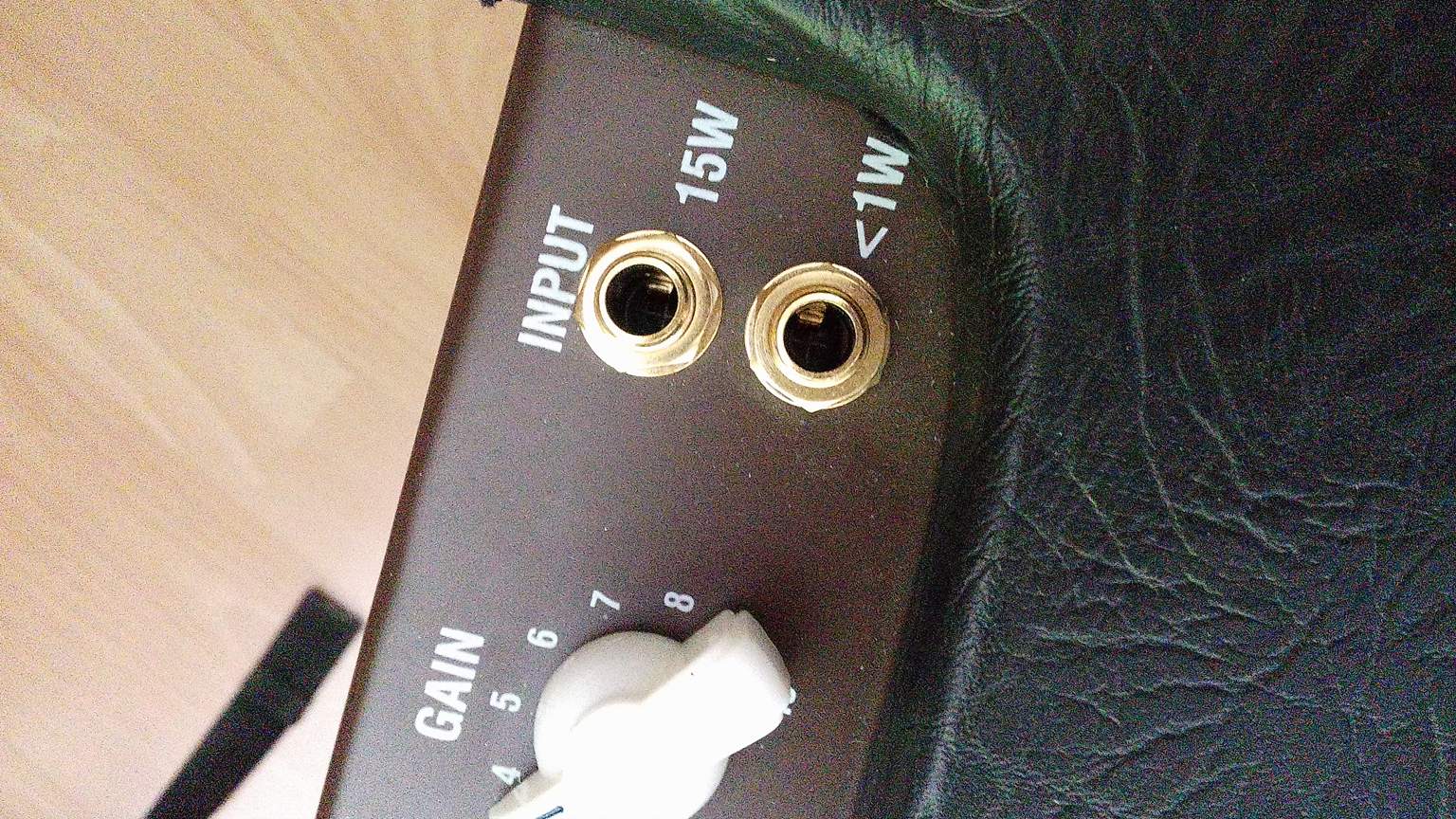 Kombo ma vstupy/vystupy: aux in, preamp out, power amp in a head phone.