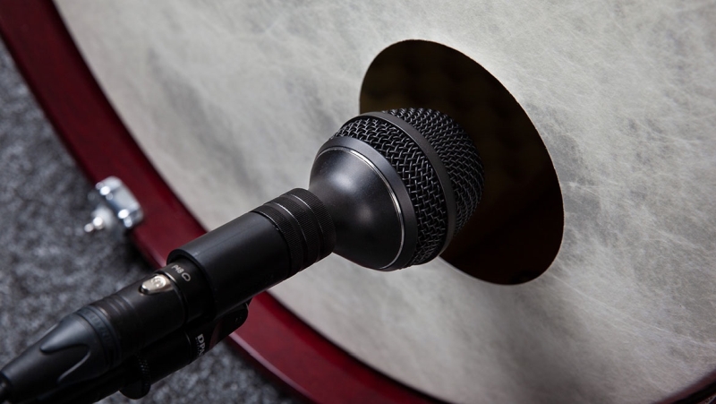 Mikrofon lze tedy umístit zvenku i zevnitř bubnu a jeho ideální pozici tak najdete rychle a bez větší námahy. DPA 4055 je vybaven velkým tělem s dostatečným množstvím tlumící akustické pěny umístěné před kapslí za mřížkou. Díky tomu si velmi dobře poradí s větrnými turbulencemi, ke kterým dochází před otvorem v rezonanční bláně kopáku.