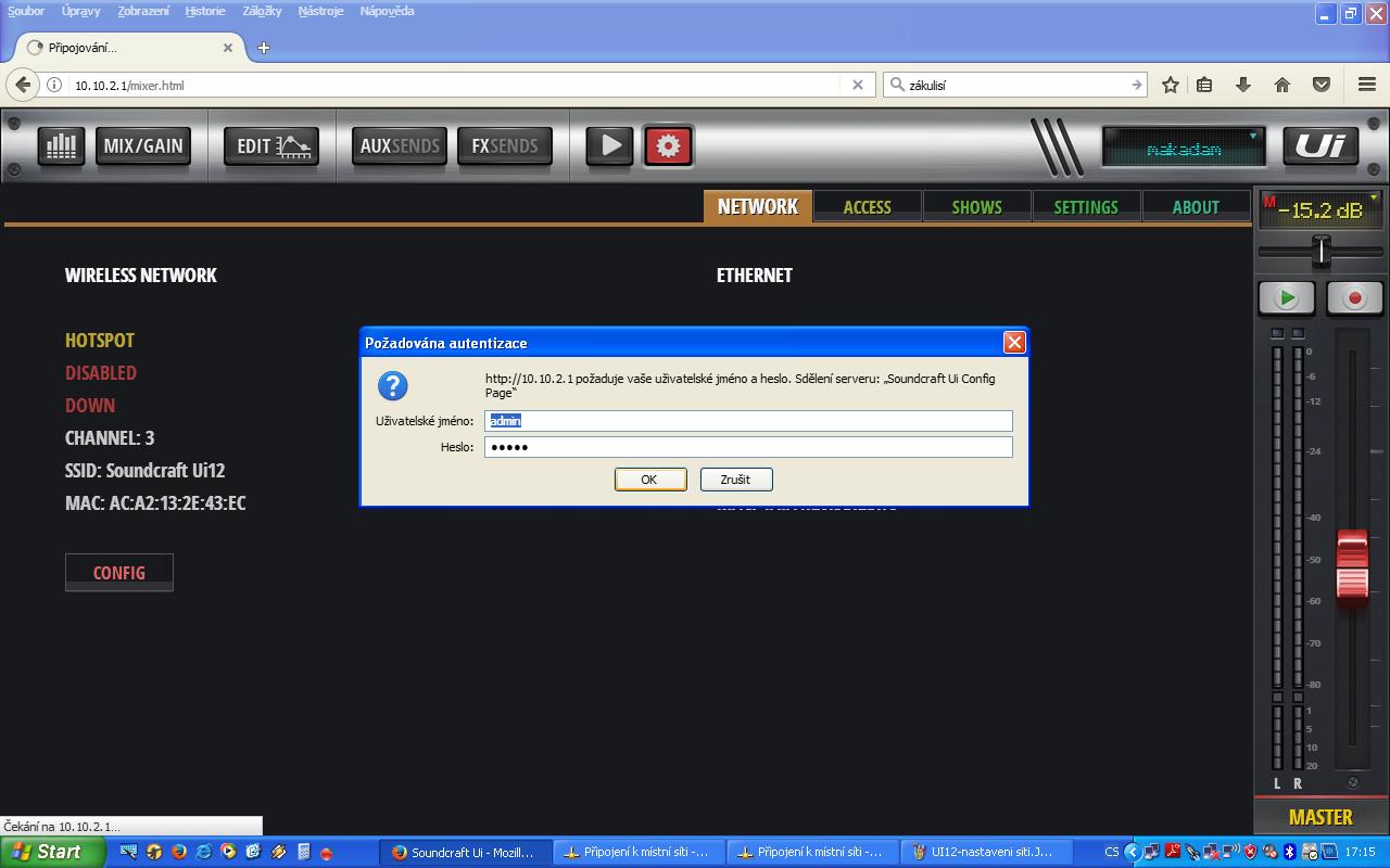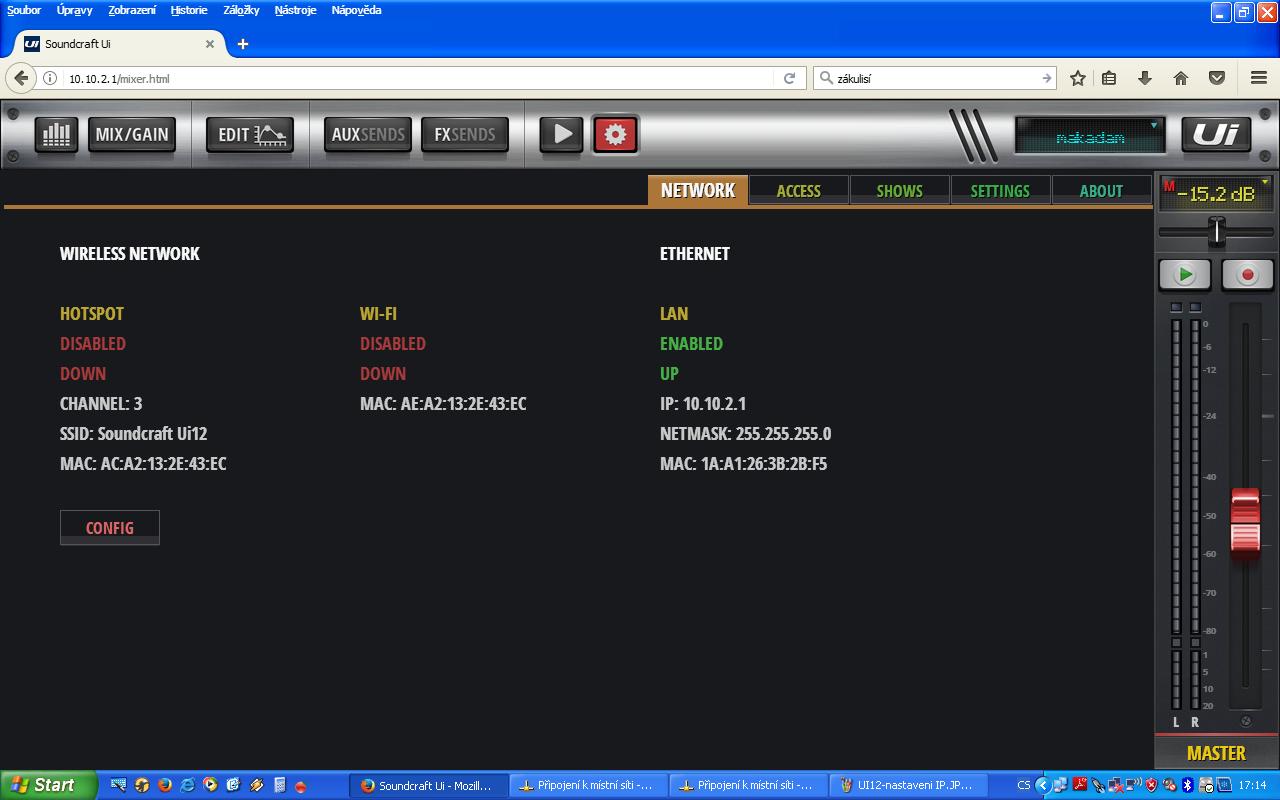 Jinými slovy, pokud v počítači nastavím IP v rozsahu adres, jako má Ui, tedy 10.10.2.XX (s vyjímkou 1, kterou má mix), pak připojení kabelem funguje, jak z praku, na první připojení LAN kabelu. Zde musím chlapsky přiznat, že i já sám jsem si již párkrát naběhl, když jsem na toto nastavení zapomněl a pak mi to, vcelku logicky, nechodilo :-)