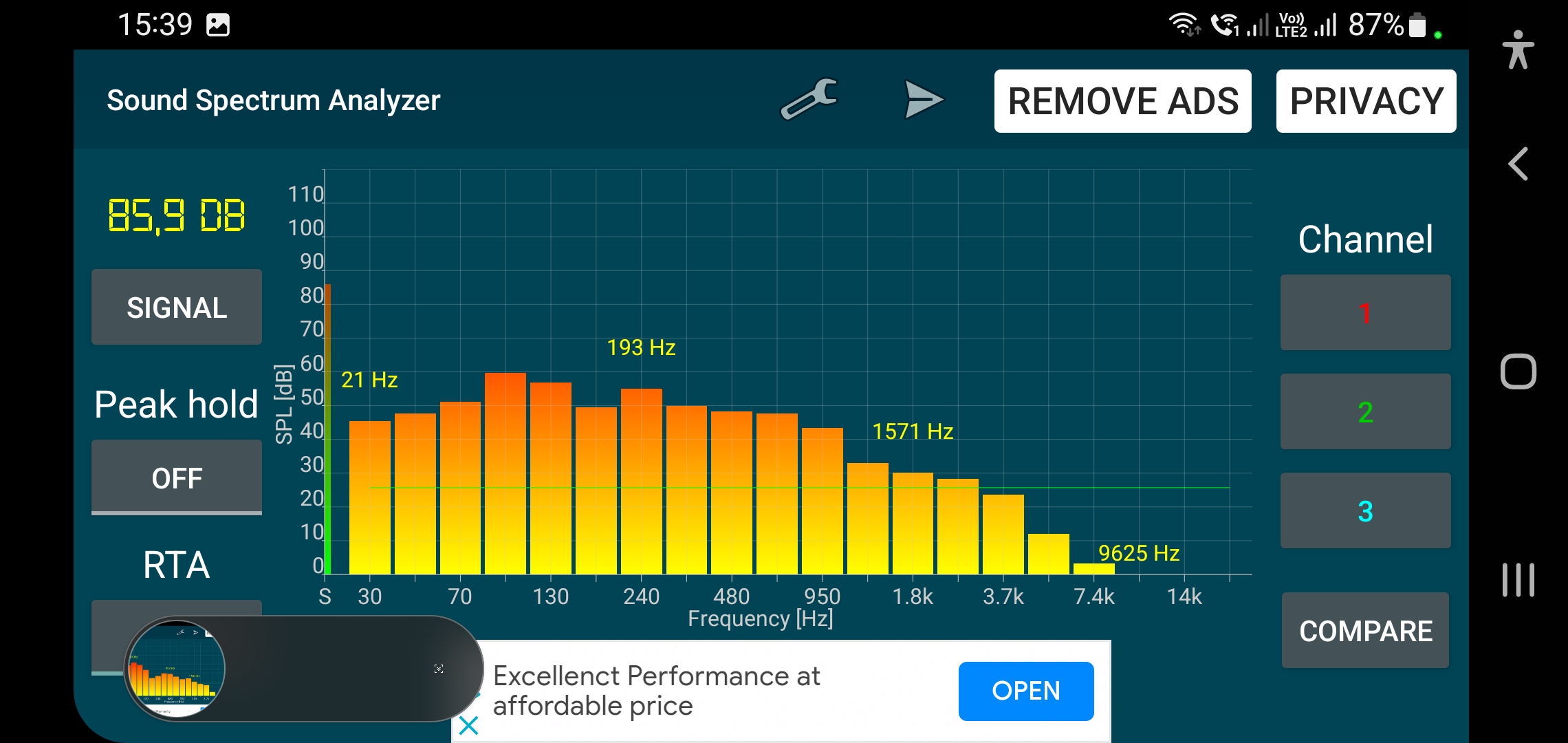 Ešte som si stiahol do mobilu apku "Sound Spectrum Analyzer" a pustil som muziku ako si doporučoval.